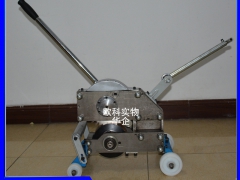 钢丝绳皮带切割机可用于各种工况条件。无需电源及其他设备辅助即可安全快速的切断皮带。 切割快速,按1400mm宽ST2000钢丝皮带为例,平均切断时间5分钟,且切口整齐,不浪费皮带,传统的断带方式是先将上下带面的橡胶剥除,再用氧气乙炔烧断钢丝。一般要耗时2-3小时,橡胶经高温烧烤易燃,同时橡胶变性肇成皮带的浪费。 体积小,重量轻,便于携带和现场切割 K3型号可切割ST2500强度以下皮带,钢丝直径7.5mm以下,K6可以切割7.5mm以上13.2mm以下 切割时可以从皮带的任意一遍切入,江比嗲卡入机器,摇动手柄即可,手柄摇动2-3圈可切断一更钢丝 且给是言皮带的一侧崔志切入,不可以切割鞋扣 可切割厚度40mm以下任意宽度