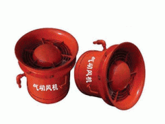 由井下压气管道中引出的压气通过胶管与气动风机外壳上的气动马达进气口联接后,开启阀门,压气驱动马达转动带动风叶轮旋转,叶轮对空气做功,使空气具有能量后以一定的速度排出风机,由风筒引导到需要的地方。