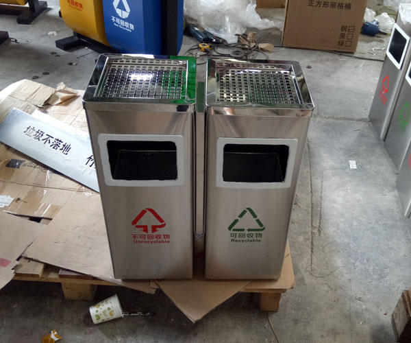 不锈钢分类垃圾桶选用材质为不锈钢板和镀锌板,内胆可选配镀锌板铁皮内桶和玻璃钢内桶,本产品为金属材质,坚固耐用,不易破损,耐火,抗高低温,适合恶劣气候条件。