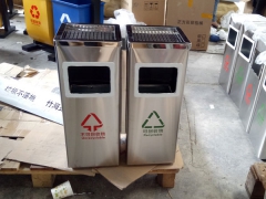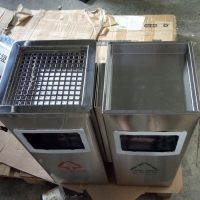 不锈钢材质 带烟灰缸垃圾桶 酒店垃圾桶
