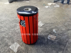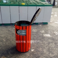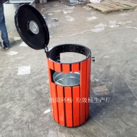 4.钢木垃圾桶金属表面双层防锈工艺,不易起皮掉漆,坚固耐用;
