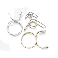 15.卡箍弹簧如(见下图1)常用于汽车储液罐等紧固之用,属双扭弹簧范畴。这种弹簧在有条件的企业可以用数控卷簧机卷制,一般企业都是用手工卷制的,卷制时可以制作一些专用辅具。先将盘料切断、校直,然后制做成“U