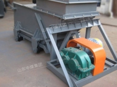 当电机开动后经弹性联轴器、减速机、曲柄连杆机构拖动倾料5°的底板在辊上作直线往复运动,煤均匀地卸到其他设备上。