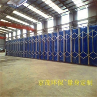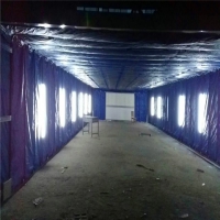 3、伸缩移动喷漆房整体为框架传动结构,每组框架间均有阻燃PVC布密封连接,安装快捷、外形美观,结构精巧,使用方便,制造成本低,节约投资;