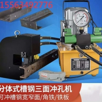 三面槽钢液压冲孔机用途特点:新型分体式液压冲孔机是用近期研发专用于厚铜排,铝排,扁钢,角钢,槽钢等金属材料冲孔的液压冲孔工具。主要用于钢结构,大型钢厂,桥梁,重工,造船等行业。