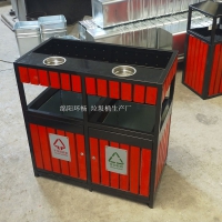 HC3208环畅钢木垃圾桶整个垃圾桶外形是一款方形的户外垃圾箱,前面两扇正对开门,每一扇门上均装有锁具,防止内胆的丢失。在门的正前方和背后用钢板钉有钢板的分类标识,分类清晰;桶内装有两个大号镀锌板内胆。
