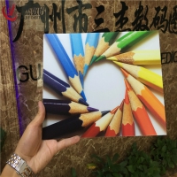 6.不受物体材质的影响: 可以用丰富的色彩在原材料 (金属、塑料、石材,皮革,木材,金属,玻璃、水晶、亚克力、铜版纸) 成品和半成品 ( 小部件整理箱,钱包,皮包,商标,牌匾等 ) 等软、硬质物体表面上进行图像的真彩图文印刷。 由于喷印时喷头与介质面是非接触性,不会因热量和压力发生变形等现象,因此也可以在容易变形柔软的原材料(如皮革及纺织品)上印刷。