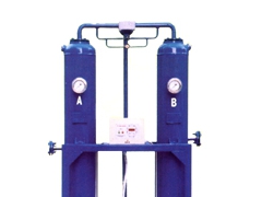 从空压机后部冷却器排出的压缩空气是一种过饱和压缩空气,含有一定量的凝结水。少量的凝结水对吸干机的影响不大,因为本公司干燥机的吸附塔底部填充了抗水的瓷球或氧化铝(没有经过活化),但是如果吸干机前没有安装气水分离器和过滤器或由于非正常因素大量的凝结水进入吸附塔内就会导致吸附恶化、露点温度急剧上升,严重时导致吸附剂破裂成粉(具体表现为:从消声器内喷出粉末、后置粉尘过滤器堵塞)而必须更换吸附剂的后果。这是因为: