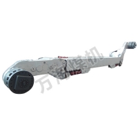 摇臂采用弯臂结构形式,左右摇臂输出端采用340x340mm的方形出轴与滚筒联结。滚筒叶片和端盘上装有截齿,滚筒旋转时靠截齿落煤,再通过螺旋叶片将煤输送到工作面刮板运输机上。