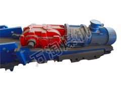 刮板输送机是一种运用挠性牵引机构的连续运输机械,它不但实现了采煤工作面运、装、卸煤的机械化,而且还有:是采煤机运行轨道;为液压支架拉移提供依托固定点;清理工作面浮煤安放采煤机电缆和悬挂固定电缆、水管、乳化液管等功能。刮板输送机驱动是由电动机通过液力偶合器、减速器将功率传递给链轮组件系统,再由该系统带动封闭的刮板链条进行循循环运转而完成运、卸煤炭的功能。