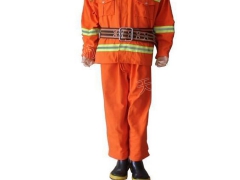 97式消防战斗服有阻燃、抗湿等特点,是消防队员在灭火战斗中保护自身而通常穿着的作业服。