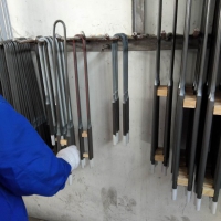 u型硅钼棒电热元件是一种以硅化钼为基础的电阻发热元件,其在氧化气氛下加热到高温,表面生成一层致密的石英玻璃膜,保护其不再氧化。因此,其具有独特的高温抗氧化性。在氧化气氛下,其高温度可达1800℃。规格尺寸有:Φ3、Φ6、Φ9、Φ12等多种规格,硅钼棒有直型棒、U型棒、W型棒、压弯直角棒等类型。 硅钼棒 若与自动化供电系统配套,既可得到精确的恒定温度,又可根据生产工艺的实际需要按曲线自动调温。硅钼棒 现已广泛应用于国防、机械、冶金、轻化、陶瓷、半导体、分析化验、科学研究等领域。