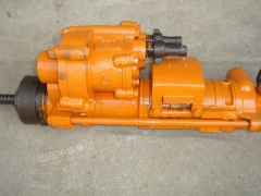 YGZ90导轨钻机是以压缩空气为动力的中深孔凿岩机具,与CTC14.2型双机采矿钻车或TJ25型圆盘式钻架配套。以压缩空气为动力的中深孔凿岩设备主要用于井下采矿场接杆钻凿上向扇型或环型中深孔的石方工程。适用于巷道断面为2.5*2.5m到3m*3m钻孔直径50-80cm,有效孔深30m。采用直径65mm的十字型合金钎头在F12-14级矿岩中,平均纯凿岩速度可达680mm/分。该钻架结构简单,拆运方便,工作安全可靠,效率高。YGZ90导轨钻机的转钎扭矩较大,故在钻凿具有列隙、溶洞的矿岩时不易卡钎,即使有时发生卡钎故障亦可采用弱冲击回转办法消除故障。凿岩机所适应的最优轴推力范围大,故便于操作。