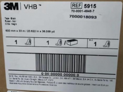 3M5915VHB双面胶有超强粘性,用于粘接金属、玻璃等高表 面能材料。3M5915有优良的耐高低温性能。长期耐高温93℃、短期耐高温149℃。广泛用在铭牌、汽车装 饰条、汽车配件、挂钩的粘接,可以取代螺钉、柳钉传统固定方法。从而提高产品美观度。易于模切和装配,有持久的粘结强度,并且有缓震和防水的效果。