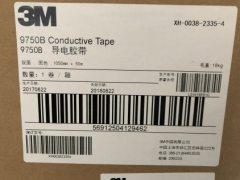 3M9750B规格:1050mmx50m 基材:导电胶 颜色:黑灰色。3M9750B导电胶厚度0.05MM,离型纸有3M字,粘性正面是450G,反面是480G。3M9750B导电布双面涂导电丙烯酸压敏胶优异从形性,适于多种表面的粘贴,应用于电磁屏蔽,接地,静电泄放等。3M9750B导电胶在帮助节省大量用于专业电子组装操作的时间-从粘贴EMI屏蔽罩于垫片接地和粘结柔性线路板以及PCB,提高了产品最终的性能和可靠性。 这些具有良好耐久的纯胶膜可以省去螺丝和机械固定物一旦允许使用更轻质,更细密的织物以及层状箔片屏蔽材料,与其它容易变脏且难以处理的导电胶黏剂不同的是,3M提供一种具有先进粘结和传导特性,易于使用压敏胶带,该胶带可以通过人工或机械设使用,可以冲压成任何形状。