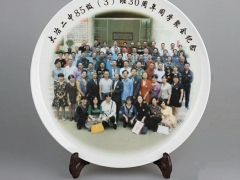宗教祭祀陶瓷纪念盘40公分厂家直销 陶瓷挂盘批发送礼选瓷盘的时候一定要注意不要选择热转印的,因为热转印的画面没有多久就掉了,图案没了的盘子就毫无意义了。送礼不要求一定要很贵重,心意很重要,选择一块一辈子不掉色的瓷盘做为礼品,是对朋友的看重,也是对自己面子的展现。校庆聚会照片人像陶瓷纪念盘 瓷质最常见的两个就是骨质瓷和白瓷。如果想要好点的话选择骨瓷,一般的就选择白瓷的。骨瓷通透,适合做朵花的图案,可以突出盘子本身的美。