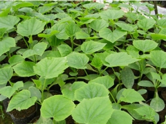 (3)旱黄瓜苗品种:植株长势强健,叶片浓绿,瓜条美观,大包大刺,并且具有抗病性强,耐高温,耐低温等特点,此品种适宜春秋保护地及越冬温室嫁接栽培,管理得当,亩产量可达3万公斤以上。诺研一号是目前市场上非常优秀的黄瓜新品种。