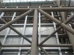 (1)防爆墙根据设计图纸和实际施工情况,对板材进行切割和开孔,必要时现场作倒角,抗爆板的两长边都已作好倒角处理,但当墙体高于2400mm时,抗爆板水平接缝的短边现场倒角,以便更好地处理接缝。
