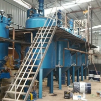 设备包括一个脱水、脱氢罐;一个脱胶罐;一个脱色罐和一个叶片过滤机组成,全部采用1.2公分钢板制造,用电或者燃烧机加热,能24小时循环连续生产。设备生产流程如下:将废机油打入脱水脱氢罐中加热到100--150度脱水脱氢;待油温降到80度时打入脱胶罐中脱胶,沉降10分钟后油温降到60度时打入脱色罐中加入脱色剂过滤即成基础油或者柴油,出油率高达85%以上,处理1吨废机油所用化工原料300元左右,颜色为浅黄色或接近水白色,油品无异味,不氧化。
