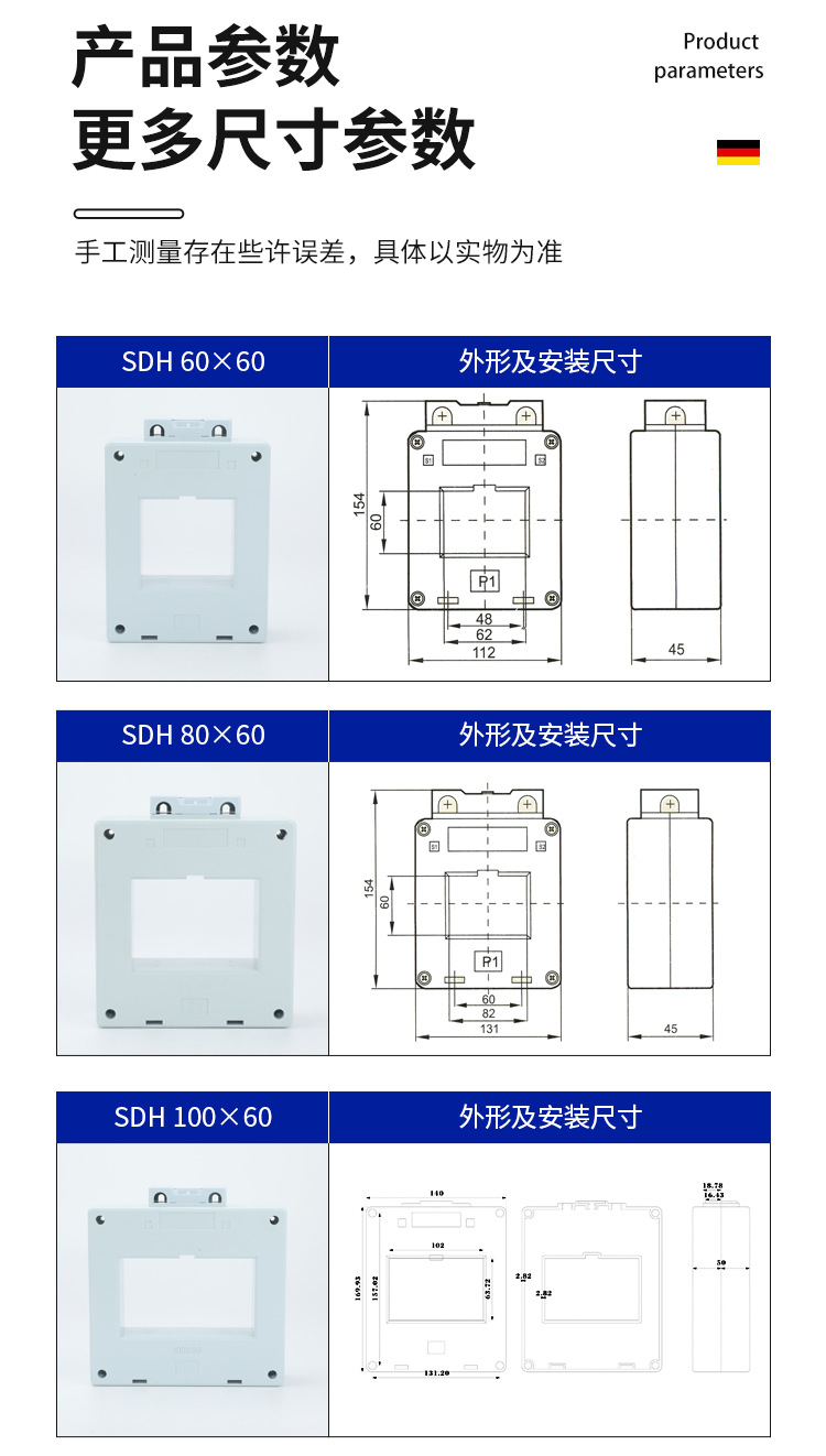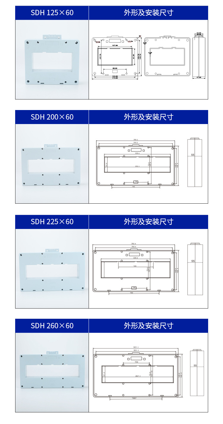 阻燃外壳SDH III-260X60低压交流电流互感器
