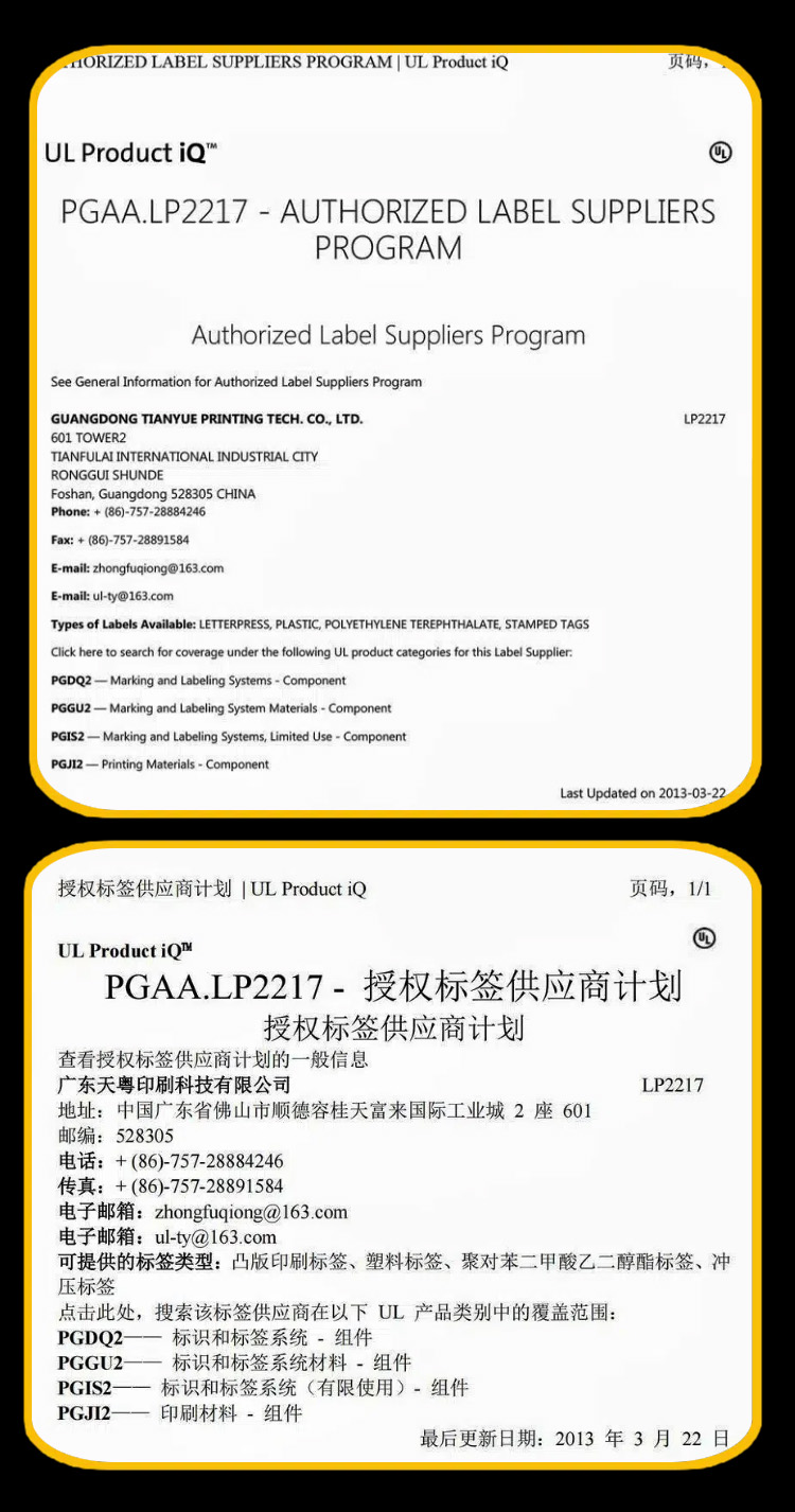 美国/加拿大UL标签亚银机身贴家居电器/厨房电器标签不干胶