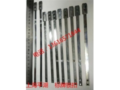 上海平湖实业有限公司生产的标牌扣适用于各种标牌的悬挂固定,不仅质好价廉、而且使用方便、悬挂牢固,适用于任何行业的防伪标识捆扎,已广泛用于钢铁行业各种棒材、线材上等标牌固定,深受用户好评。