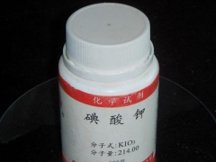外观与性状:无色或白色结晶粉末,无色单斜结晶,一酸合物KIO3.HIO3和二酸合物KIO3.2HIO3j均为无色单斜晶体。无臭 。